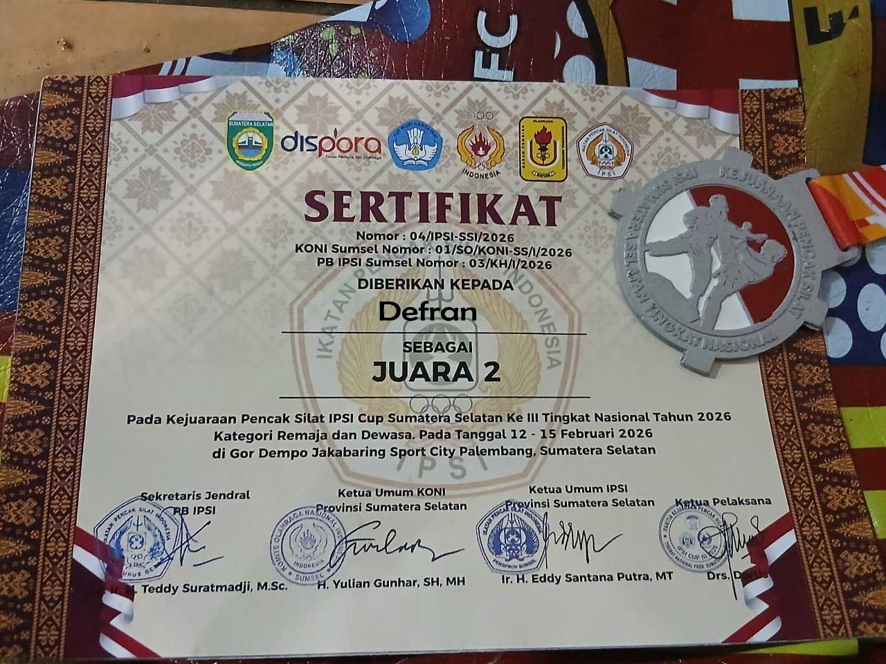 Kompetisi yang berlangsung ketat selama empat hari, mulai dari 12 hingga 15 Februari 2026 ini, diselenggarakan di GOR Dempo Jakabaring Sport City, Palembang. Defran bertanding pada kategori Remaja dan Dewasa, menghadapi lawan-lawan tangguh dari berbagai perguruan silat se-Indonesia.