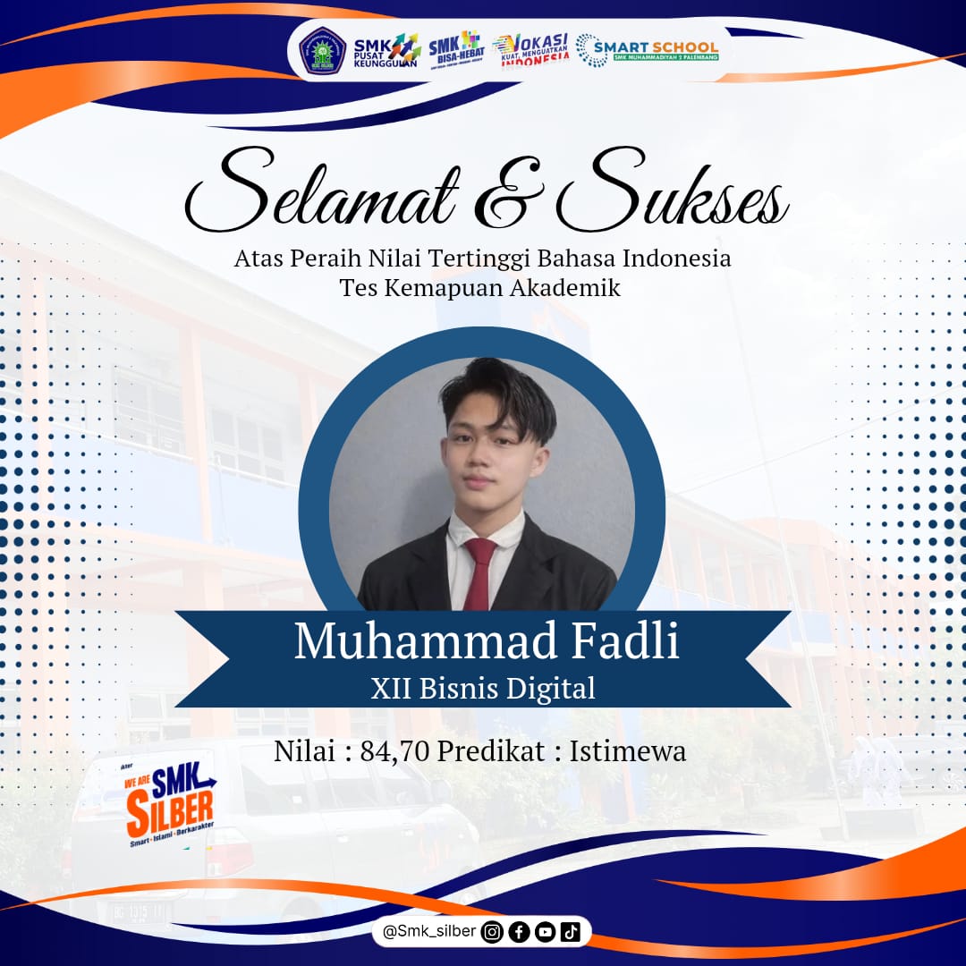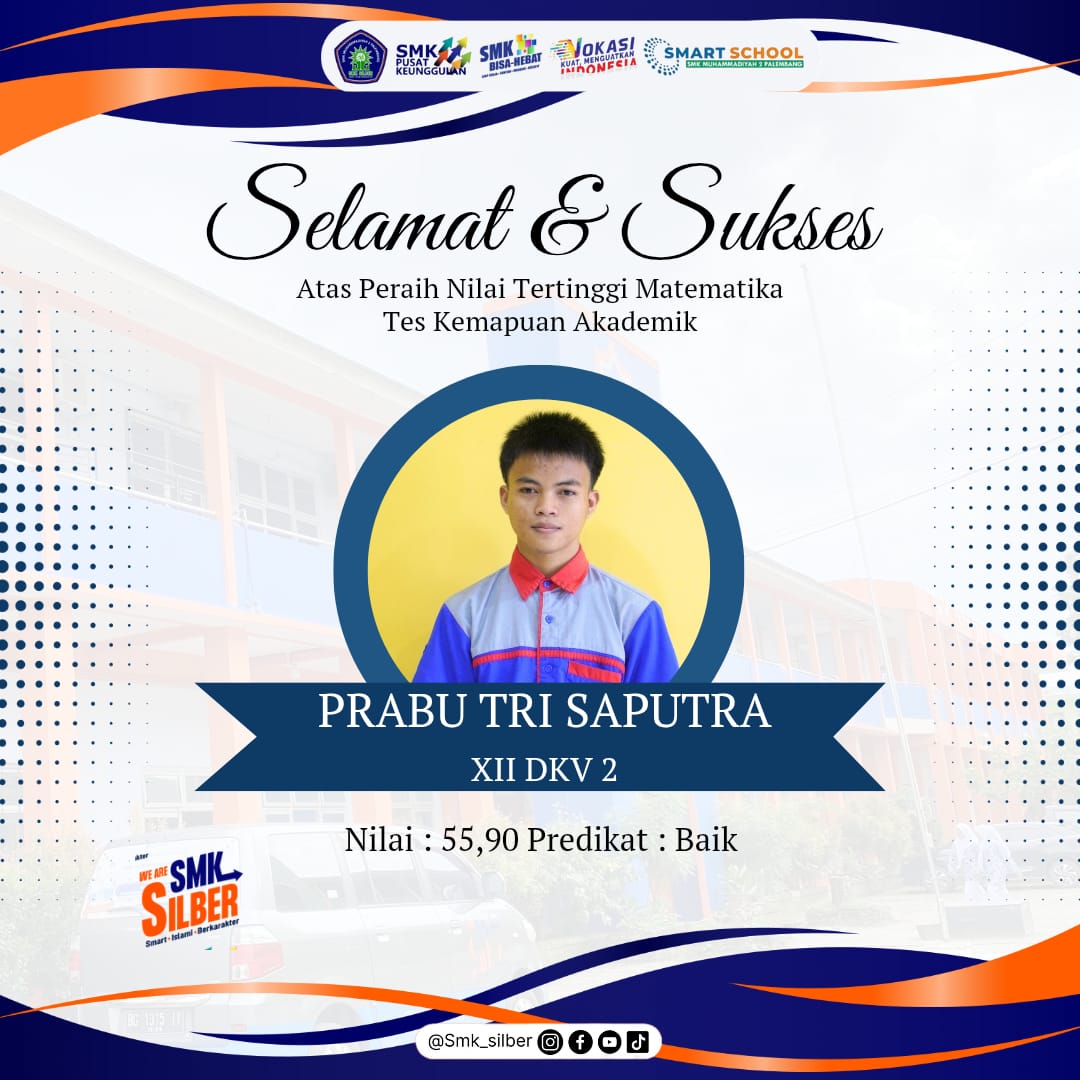 PALEMBANG – SMK Muhammadiyah 2 Palembang (SMK Silber) kembali membuktikan kualitasnya sebagai sekolah pusat keunggulan. Melalui pengumuman resmi Pimpinan Ranting Ikatan Pelajar Muhammadiyah (PR IPM), lima siswa terpilih berhasil mencatatkan nilai tertinggi dalam ajang Tes Kemampuan Akademik (TKA) tahun ini.