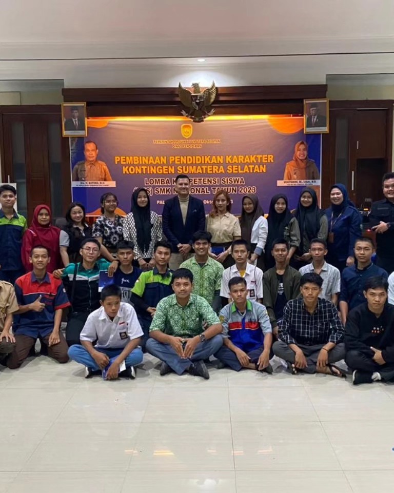 Dokumentasi kegiatan Pembinaan Pendidikan Karakter bagi para siswa terpilih yang mewakili Provinsi Sumatera Selatan dalam ajang Lomba Kompetensi Siswa (LKS) SMK Tingkat Nasional Tahun 2023.