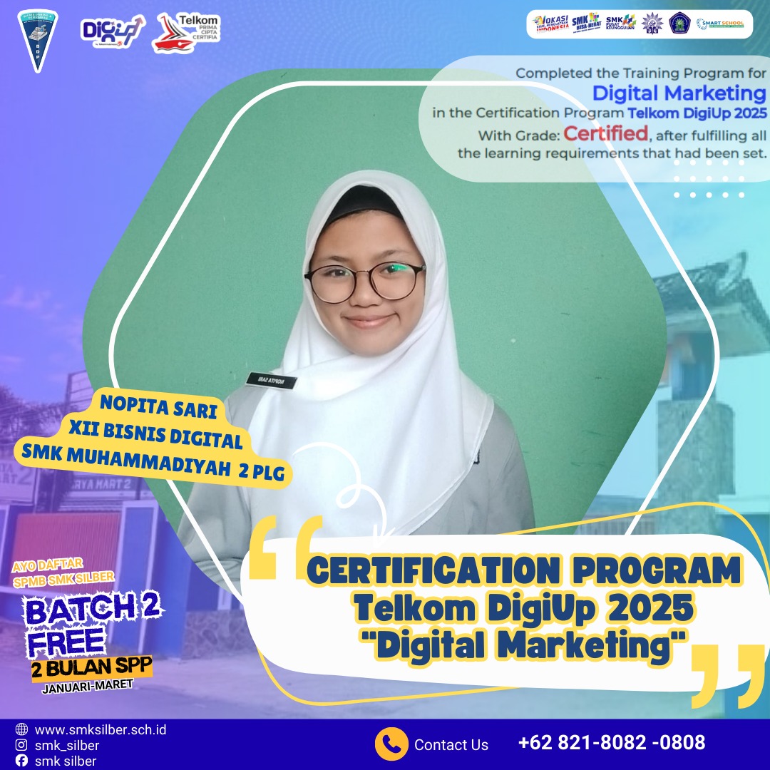 #SMKMuhammadiyah2Palembang #SMKSilber #SMKBisa #SMKHebat #VokasiKuatMenguatkanIndonesia #TelkomDigiUp2025 #DigitalMarketing #SertifikasiKompetensi #BisnisDigital #SiswaBerprestasi #InfoPPDBPalembang #PPDB2026 #SekolahPalembang #PalembangUpdate