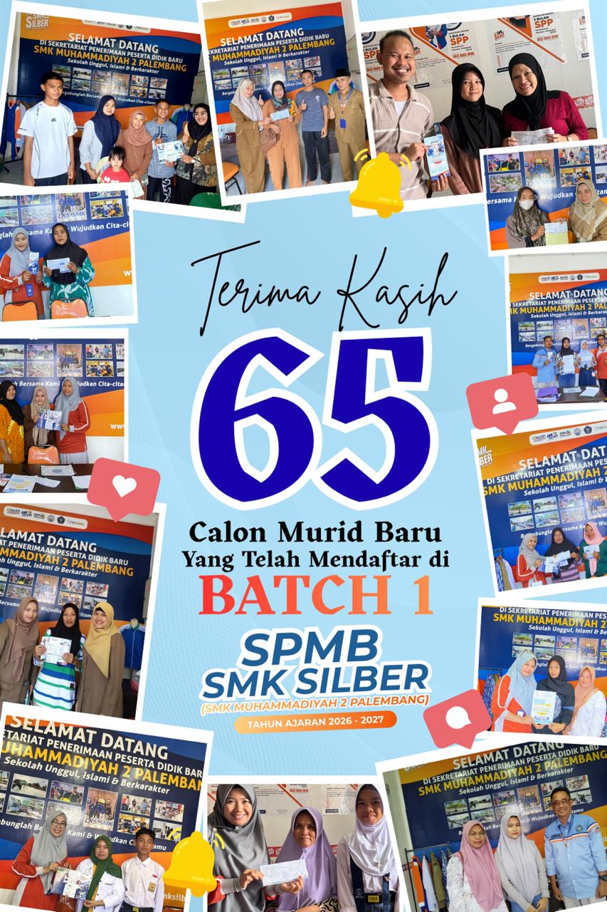 SMK Muhammadiyah 2 Palembang (SMK Silber) menutup akhir tahun 2025 dengan catatan gemilang. Panitia Penerimaan Peserta Didik Baru (SPMB) mengonfirmasi bahwa per tanggal 31 Desember 2025, kuota Batch 1 resmi ditutup dengan total 65 calon peserta didik baru yang telah melakukan pelunasan administrasi.